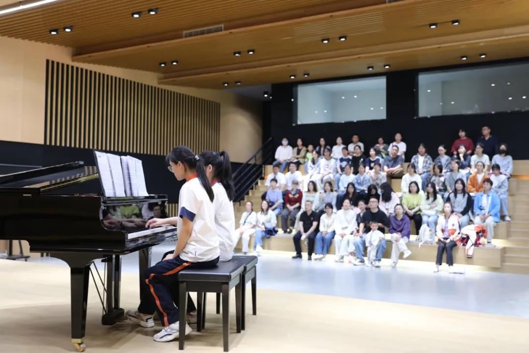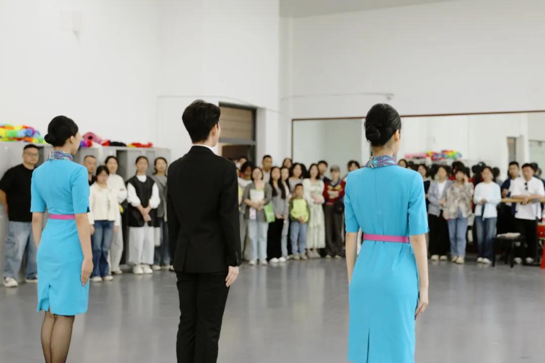 隨后的校園探訪環節,家長與學生在小導游的引導下,先后參觀美育作品展廳、木棉工作室、一爾皮具工坊、匠心坊及箱創空間,并沉浸式體驗了學前教育專業的四手聯彈、歌舞展示及航空服務禮儀操。