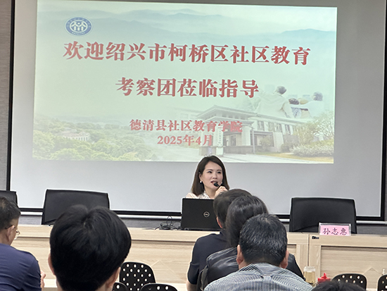 孫志惠帶領考察團參觀了德清縣社區教育學院并介紹了近年來社區教育工作開展情況。隨后,孫志惠向考察團重點匯報了學院“樹人”家庭教育的發展歷程,主要從內容與實踐、創新與突破、成果與反饋等方面詳細生動地介紹了家庭教育工作開展情況。