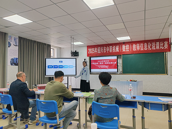 次日舉行的信息化說課比賽呈現(xiàn)數(shù)字化轉型新氣象。來自全市4所中職院校的骨干教師同臺競技,嚴建棟、沈峰等教師運用虛擬仿真、數(shù)字孿生等新技術重構教學流程,楊超睿老師開發(fā)的“智能評課系統(tǒng)”實現(xiàn)教學評價即時可視化,吳鎧波老師的“產(chǎn)教云課堂”打通校企數(shù)據(jù)壁壘,章茺老師構建的“MR故障診斷系統(tǒng)”突破設備維護教學瓶頸,充分展現(xiàn)紹興職教數(shù)字化轉型的創(chuàng)新成果。