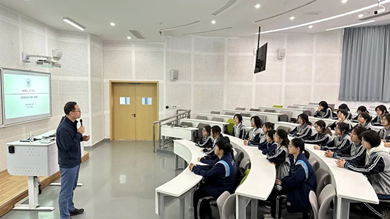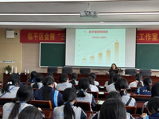 參觀結束后,塘棲中學副校長胡春英以“做有精度的教學管理”為主題,向在場師生介紹了塘棲中學的在美術特色人才培養上取得的成績。并與同學們親切交流,分享高效學習方法和藝術專業成長心得,寄語同學們:“藝術之路需要熱愛與堅持,愿你們在普職融通的平臺上,找到屬于自己的精彩。”