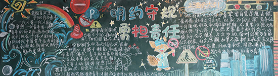 妙筆繪板展風(fēng)采,規(guī)則擔(dān)當(dāng)入心間。各院系按22級(jí)、23級(jí)、24級(jí)三個(gè)年級(jí),分別以“法制學(xué)習(xí) 知法守法”“明約守規(guī) 勇?lián)?zé)任”“交通安全 文明出行”為主題,開展黑板報(bào)評(píng)比展示活動(dòng)。各班級(jí)積極響應(yīng),學(xué)生充分發(fā)揮創(chuàng)造力,以斑斕色彩與工整文字,將規(guī)則意識(shí)、擔(dān)當(dāng)精神融入板報(bào)創(chuàng)作。