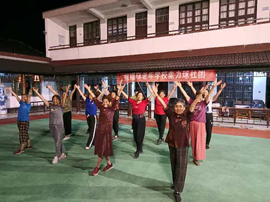 夜幕下的廣場燈光璀璨,學(xué)員們手持彩球,跟隨洪老師的口令揮灑汗水。柔力球運動柔和連貫的動作與輕快的音樂相融,既鍛煉了身體協(xié)調(diào)性,又展現(xiàn)了靈動舒展的姿態(tài)。活動現(xiàn)場氣氛熱烈,既有中年學(xué)員專注揣摩動作細節(jié),也有老年朋友興致勃勃地交流切磋。不少參與者表示:“白天忙農(nóng)活,晚上能學(xué)新技能,既能強身健體,又能認識新朋友,這樣的活動真是太貼心了!”