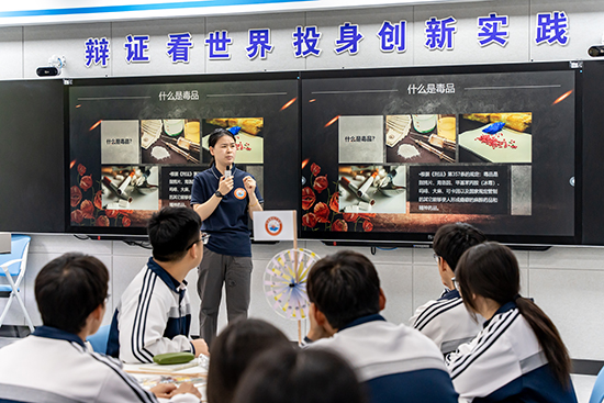 在非遺傳承的講解之后,禁毒辦工作人員帶來了嚴(yán)肅而深刻的禁毒知識講解。工作人員用通俗易懂的語言,闡述了什么是毒品,從傳統(tǒng)毒品到新型毒品,逐一揭開毒品的偽裝。同時,結(jié)合真實案例,生動剖析吸毒對個人健康、家庭和社會造成的嚴(yán)重危害,讓同學(xué)們認(rèn)識到毒品的可怕,提高了識毒、防毒、拒毒的意識和能力。?