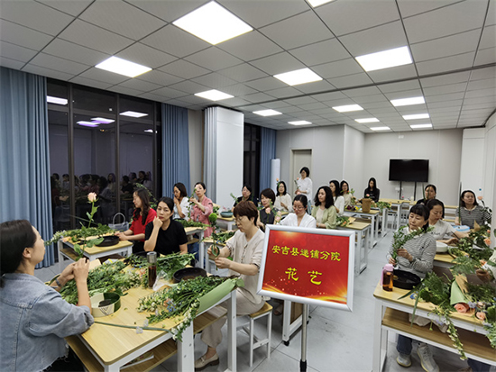 5月6日晚,華燈初上,安吉縣社區教育學院遞鋪分院內燈火通明、熱鬧非凡,新時代市民(青年)夜校2025年第二期(總第八期)在這里正式開班。來自安吉縣各個村鎮、社區的150余位學員,有的手持嶄新的學習用具,有的與同行伙伴熱切交流,眼神中滿是對即將開啟學習之旅的期待,隨后,他們各自奔赴軟筆書法、瑜伽、古箏、歌詠和傳統插花等課程教室,開啟了充實的學習時光。