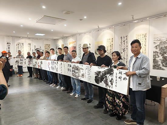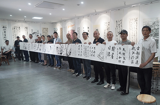 5月1日下午,諸暨市楓橋鎮的“楓橋鄉賢會館”內歡笑聲不斷,諸暨市古越書畫院與楓江書畫社的50多名社員歡聚一堂,在展覽廳舉行聯誼活動。