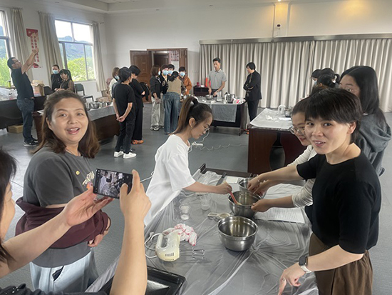 此次培訓特邀資深西式面點師林建斌老師現場授課?;顒又?,林老師憑借豐富經驗和精湛技藝,耐心細致地為學員們講解曲奇餅干、紙杯蛋糕等甜品的制作方法,從食材配比、攪拌技巧到烘烤溫度控制,每一個步驟都深入淺出。學員們全神貫注,認真聆聽、積極動手操作,現場氛圍熱烈。