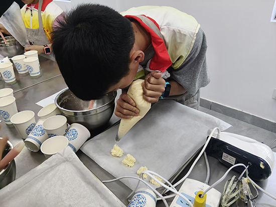 活動現(xiàn)場,呂櫻老師以通俗易懂的語言詳細講解了曲奇制作的關(guān)鍵步驟,從黃油軟化、面粉篩分到裱花塑形,每一個環(huán)節(jié)都進行了細致示范。家長和孩子們分組協(xié)作,揉面、擠花、烘焙,在溫馨的互動中感受烘焙的樂趣。“媽媽,你看我的曲奇像不像小花朵?”孩子們舉著自己的作品興奮地展示,烘焙室內(nèi)充滿了歡聲笑語。經(jīng)過一個多小時的耐心等待,金黃酥脆的曲奇餅干新鮮出爐,大家迫不及待地品嘗自己的勞動成果,紛紛稱贊“比買的還好吃”。