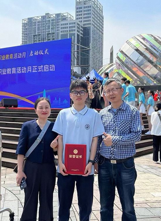 “在結(jié)束不久的高職考外貿(mào)理論考試中,孩子取得了優(yōu)異的成績(jī),入讀本科的希望很大。今天又接受了榮譽(yù)表彰,孩子的成長(zhǎng)讓我激動(dòng)又欣慰,特別想對(duì)一路上給與孩子指導(dǎo)和幫助的老師們說(shuō)聲謝謝。”5月11日,在寧波市職業(yè)教育宣傳月活動(dòng)啟動(dòng)儀式上,為第十九屆寧波市中等職業(yè)學(xué)校(技工院校)技能大賽一等獎(jiǎng)第一名獲獎(jiǎng)?wù)吲e行頒獎(jiǎng)儀式,寧波東錢(qián)湖旅游學(xué)校陳旌祺同學(xué)作為數(shù)字貿(mào)易合同磋商與履行賽項(xiàng)的一等獎(jiǎng)第一名的團(tuán)隊(duì)代表上臺(tái)領(lǐng)獎(jiǎng)。陳旌祺的父母到現(xiàn)場(chǎng)見(jiàn)證孩子的榮耀時(shí)刻,感概萬(wàn)千。