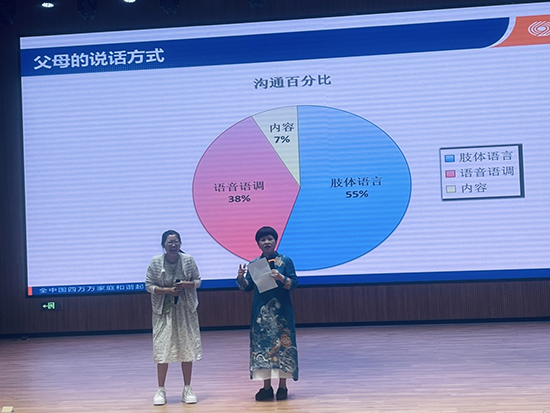 下午,陳余樂(lè)圍繞《高EQ智慧父母的實(shí)踐路徑》作主題報(bào)告。首先列舉“當(dāng)代父母育兒40個(gè)常見(jiàn)煩惱”孫文明引起共鳴。結(jié)合一個(gè)個(gè)案例解釋“為什么比怎么辦更重要”,得出“孩子問(wèn)題形成的原因:父母的情緒化、父母不懂孩子”,得出“懂孩子比愛(ài)孩子更重要,培養(yǎng)自己比培養(yǎng)孩子更重要”“父母最好的愛(ài)體現(xiàn)在孩子能量低的時(shí)候,父母最好的教育發(fā)生在孩子能量高的時(shí)候。”的結(jié)論。通過(guò)臺(tái)上臺(tái)下互動(dòng),指出父母與子女溝通的重要性。隨著深入淺出地分析,最終形成父母成長(zhǎng)的智慧:“關(guān)系是一切的良藥,愛(ài)是良藥的良藥,欣賞鼓勵(lì)是愛(ài)的最好表達(dá)方式。”“不是孩子優(yōu)秀你接納孩子,而是你接納孩子,孩子才優(yōu)秀。”“不是從孩子身上看到了希望,你才相信孩子,而是相信孩子,你才能看到希望。”“不是孩子有責(zé)任感了你才放手,而是你放手了孩子才有責(zé)任感。”“不是孩子聽(tīng)話了,你才尊重孩子,而是你尊重孩子,孩子才聽(tīng)話。”