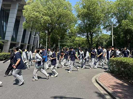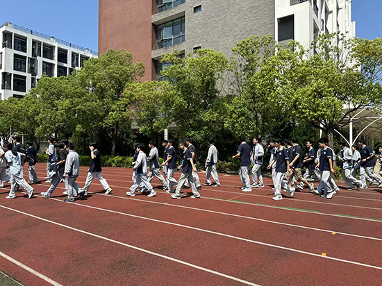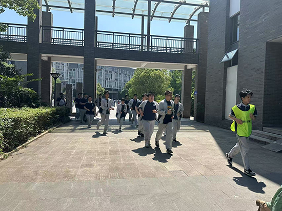 “別著急,分為二路縱隊有序撤離”“不要跑,以快步走方式到運動場集結”5月14日下午1時50分,隨著警報聲的響起,諸暨技師學院101個班級4000多師生迅速、有序地沿著安全通道向操場緊急疏散,整個過程用時6分35秒,這是該校響應2025年“防災減災”宣傳周和反恐宣傳月教育活動組織實施的教學樓應急疏散演練。
