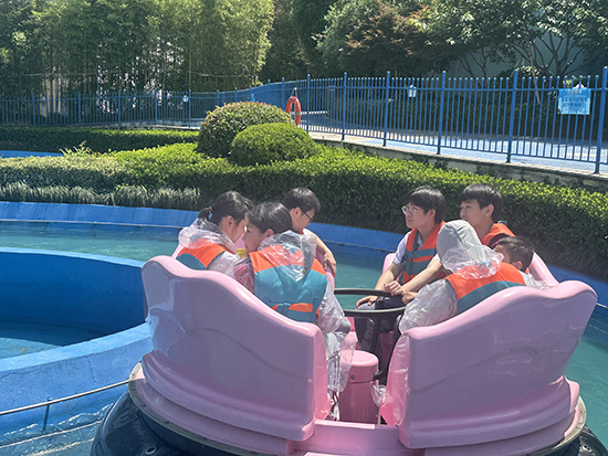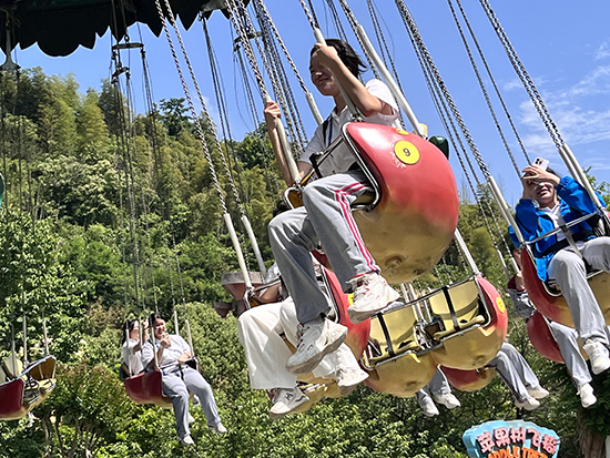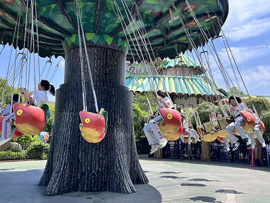 學生暢游精靈森林、蒸汽王國等主題區,自主體驗蘋果樹飛椅、遠古石船、歡樂漂流、風中飛舞等多元項目,在開放式探索中,激發好奇心與創造力。