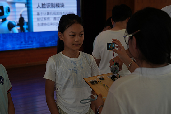 隨后,沈亞東老師及創(chuàng)客團(tuán)隊(duì)的同學(xué)們帶著智能測溫臺(tái)(利用語音合成技術(shù))、智能自動(dòng)窗(語音識(shí)別、語音合成技術(shù))、AI智能測油溫機(jī)(利用語音合成及圖像識(shí)別技術(shù))、“甲烷生成的新篇章”(圖像識(shí)別、語音識(shí)別、語音合成)等智能小發(fā)明,讓孩子們親身參與體驗(yàn)科技帶來的樂趣,孩子們躍躍欲試,驚訝地表示:哇!這個(gè)機(jī)器居然聽得懂我的指令哦!太神奇了!孩子們眼睛里閃爍著好奇與興奮的光芒。