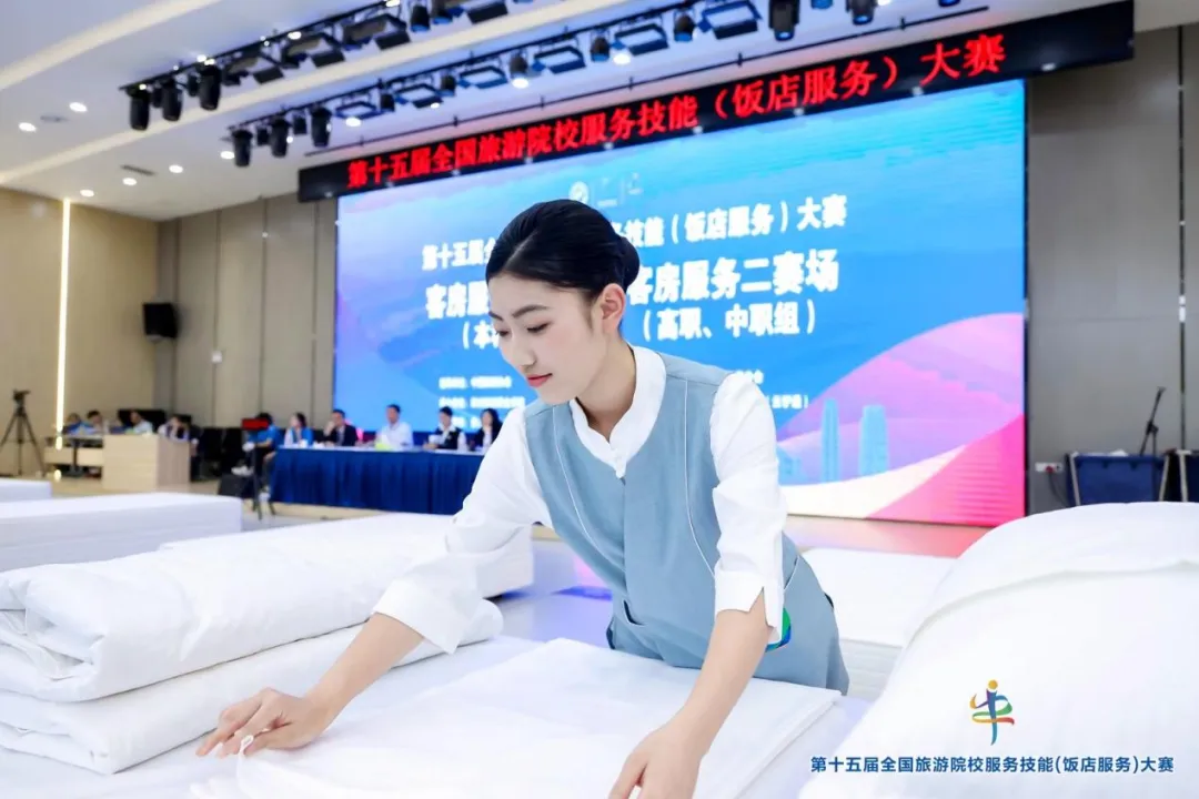 本次大賽共有來自全國28個省、自治區、直轄市的185所院校隊、596名選手報名參賽,分本科院校組、高職高專院校組和中職學校組,設中餐宴會擺臺、西餐宴會擺臺、客房服務、雞尾酒調制四個項目,通過理論、英語、實操三重考核檢驗選手綜合能力。
