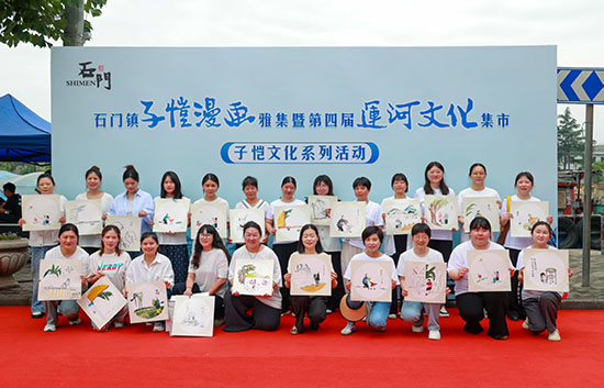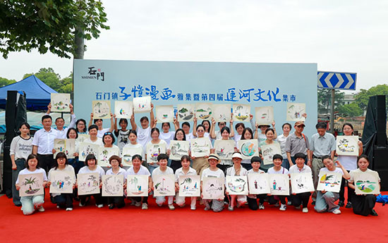 當(dāng)100位“三娘娘”的畫筆在運(yùn)河畔起落,當(dāng)藍(lán)印花布旗袍與水墨漫畫交相輝映,5月16日的石門120度拐彎處——吳越疆界,正上演著一場全民共學(xué)的文化盛宴。這場由石門鎮(zhèn)成校(老年學(xué)校)發(fā)起的子愷漫畫創(chuàng)作活動,以藝術(shù)為墨、以熱愛為紙,勾勒出新時代學(xué)習(xí)型社會建設(shè)的鮮活樣本。