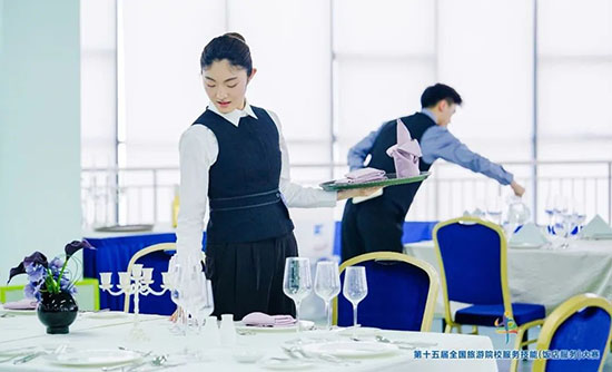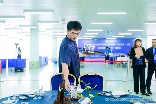 本次大賽匯聚全國28個省、自治區、直轄市的185所院校、596 名選手參賽,分本科院校組、高職高專院校組和中職學校組,設中餐宴會擺臺、西餐宴會擺臺、客房服務、雞尾酒調制四大競技模塊。各項目融合理論考核、英語測試、現場實操三重考核,全面考查學生飯店服務綜合能力。這場覆蓋全國28個省市的行業頂級賽事,堪稱“飯店服務界的奧林匹克”。學校選手優異成績的背后,是日均12小時的技能淬煉與超越 28省的競技印證,更彰顯了參賽學生的拼搏精神與指導教師團隊的匠心培育。