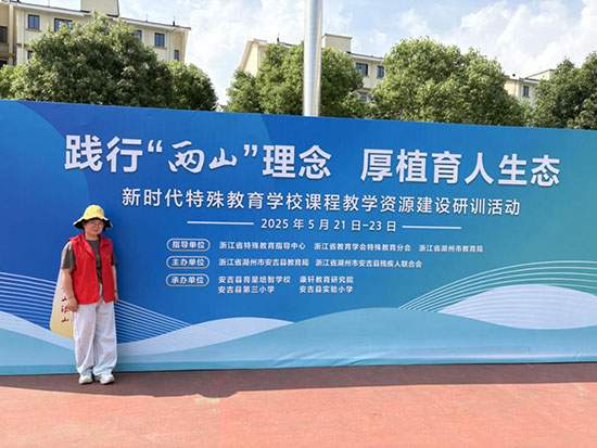 5月21日至23日,安吉縣育星培智學(xué)校與其他三所學(xué)校聯(lián)合承辦“踐行‘兩山’理念 厚植育人生態(tài)——新時代特殊教育學(xué)校課程教學(xué)資源建設(shè)研訓(xùn)活動”。在22日上午的主題活動中,育星培智學(xué)校的老師和同學(xué)們共同“出攤”,展示由老師指導(dǎo)、學(xué)生完成的手工藝品和安吉特產(chǎn)。龔天萍老師帶領(lǐng)學(xué)校青年教師周斌斌赴育興培智學(xué)校參與當(dāng)天上午活動的志愿服務(wù)工作。