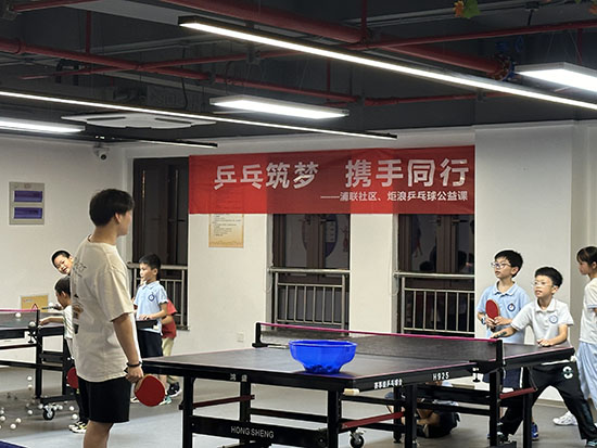 開課當日,社區活動室內充滿歡聲笑語,孩子們手持球拍,興奮地等待課程開始。炬浪乒乓球館和社區工作人員精心布置的 “乒乓樂園” 主題場地,墻上貼滿乒乓球明星海報和趣味標語,瞬間點燃孩子們的熱情。培訓班教練通過訓前熱身、趣味互動游戲,讓孩子們快速熟悉彼此,在輕松氛圍中,孩子們的乒乓學習之旅正式拉開帷幕。