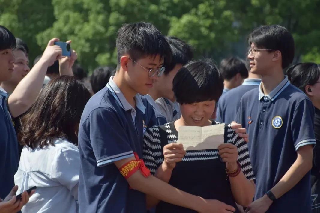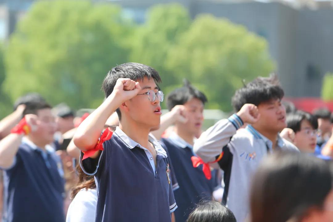 副校長將“決勝高考”的大旗授予高三年級教務主任樓迪老師接旗獵獵作響的旗幟,宛如燃燒的火焰點燃了每一個人的斗志。全體學子高舉右拳,誓言如雷。隨著激昂的《少年中國說》響起,全體師生再次跨越成人門邁向充滿無限可能的新征程。