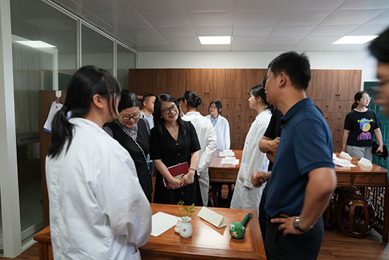 學員們首先參觀了學校的中草藥基地和中醫藥陳列館,這里不僅是學生學習中醫藥文化的第二課堂,更是學校踐行生態文明教育的重要基地。參觀過程中,大家對學校將傳統中醫藥文化融入校園文化的做法表示贊賞。