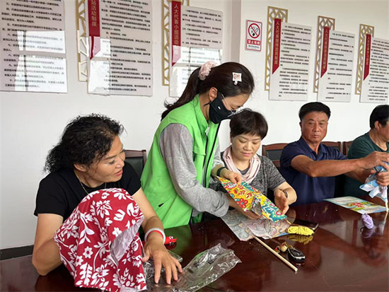 在動(dòng)手制作環(huán)節(jié),大家熱情高漲。先將棉布裁剪成合適的形狀,接著填充艾草和PP棉,然后細(xì)心縫合。老人們雖然動(dòng)作稍顯緩慢,但每一個(gè)步驟都做得一絲不茍。遇到困難時(shí),相互交流、互相幫助,現(xiàn)場(chǎng)氛圍十分融洽。李阿姨笑著說(shuō):“平時(shí)在家閑著沒(méi)事,這次能親手制作養(yǎng)生錘,既有趣又實(shí)用,還能和老伙計(jì)們一起聊聊天,太開(kāi)心了!”