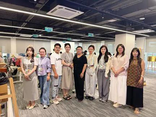 在浙江育英職業技術學院黨委書記謝鑫的陪同下,教研組一行參觀了學生靜態作品展,并觀摩了畢業秀作品匯演。此次展覽以“創新、跨界、可持續”為主題,匯聚了人物形象設計等5個專業的優秀畢業作品, 不僅展現了扎實的專業功底,更體現了年輕一代對科技賦能藝術的深刻思考。