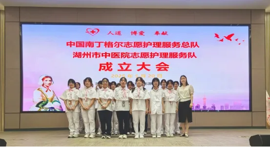 5月20日,浙江省湖州藝術與設計學習下護理專業2426班40位學生在班主任和實習實訓處老師的帶領下,參加了湖州市中醫院志愿護理服務隊成立大會。本次大會由中國南丁格爾志愿護理服務總隊主辦,旨在傳承南丁格爾精神,并進一步弘揚“人道、博愛、奉獻”的紅十字精神。