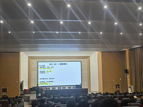 七年級學生家長面對孩子進入初中后不一樣的課程;身體、心理上的極大變化,尤其出現“孩子作業拖拉,學習勁頭下降”等情況,變得手足無措,哪如何處置?學校邀請了浙江省家庭教育講師團成員、諸暨市家庭教育講師團團長陳國楊為家長們作《今天我們怎么做家長》的報告。陳國揚出示了網絡上“輔導孩子作業崩潰”的典型案例以及普遍面臨的困境——孩子作業拖拉,學習興趣不高等問題。陳國揚教給家長九字箴言:給動力、給肯定、給支持。給動力,陪著孩子做夢。多肯定孩子的夢想,陳國揚告訴家長,允許孩子的夢想遠大一點,要幫助將夢想具體化,落到眼前之事上;與孩子一起為目標的實現制定有效計劃。給肯定,挖掘優點及時鼓勵。陳國揚分析了孩子壞習慣形成的原因和過程,就是因為受到不停的批評打壓,導致孩子情緒不爽,青春期孩子會產生對抗意識和對抗行為,最終導致錯誤習慣養成。家長要做的不是盯著錯誤不放,而是要肯定正確的行為,孩子在鼓勵聲中會重復正確!給支持,父母好好學習,孩子天天向上。講座結束,家長們紛紛表示“學到了真經”,尤其是肯定鼓勵孩子的話術流程。