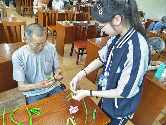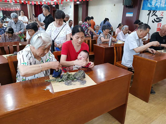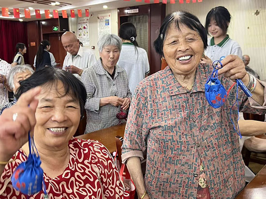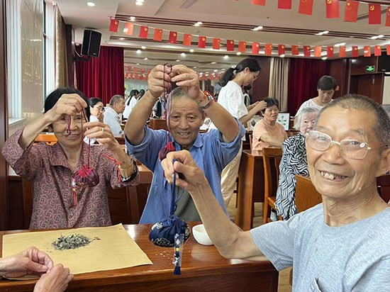 同學們圍繞端午這一主題,運用自身所學,從八段錦養(yǎng)生操到各種傳統(tǒng)非遺手工制作,看老人們玩得多專注。