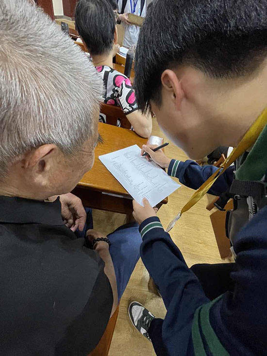 要把愛傳遞,就不能只是一個人的事。在漆扇,紅繩,手串等非遺手作活動中,志愿者們手把手教導老人如何去完成手工作品。看著老人們心滿意足的笑容,我們才知道,這也許就是護理的真諦。
