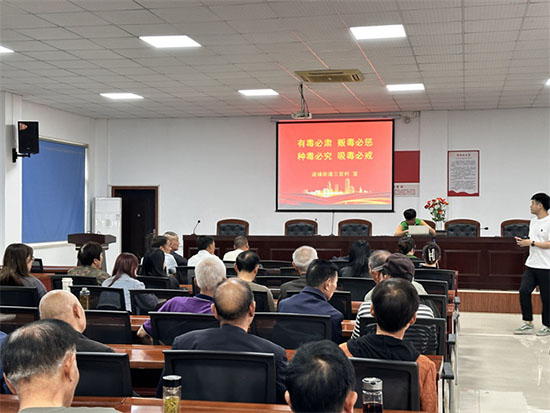 5月29日下午,安吉縣社區教育學院遞鋪分院三官老年學堂內氣氛熱烈,一場意義非凡的禁毒宣傳活動在此展開,來自三官社區的40多位村民積極參與其中。