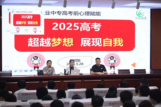 高考臨近,為有效緩解高三學(xué)子備考?jí)毫Γ龑?dǎo)其科學(xué)調(diào)適心理狀態(tài),以更加自信、從容、積極的心態(tài)迎接人生大考,5月28日,德清職業(yè)中專開展了主題為“超越夢(mèng)想 展現(xiàn)自我”的高考考前心理輔導(dǎo)專題講座。智能制造系副主任王穎斌,經(jīng)貿(mào)信息系副主任楊芬,政教處學(xué)生發(fā)展指導(dǎo)中心心理健康專業(yè)教師崔明敏以及全校高三學(xué)子參加。