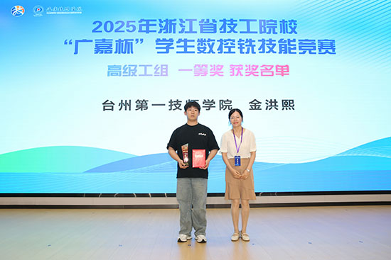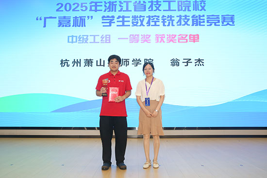 閉幕式上,裁判長邵樹鋒老師對賽事進行專業(yè)點評,高度肯定了選手們的技術水平與競技精神,同時強調(diào)數(shù)控技術在制造業(yè)中的核心地位,鼓勵學子們以賽促學、精進技能。本次競賽依托杭州廣嘉機電有限公司等多家技術支持單位的資源支撐,全程對標行業(yè)標準,為選手搭建了高規(guī)格的技能展示平臺。最后,成績的揭曉把閉幕式推向高潮。通過奮力拼搏,學校馮一航獲得高級工組二等獎,吳宇博獲三等獎。