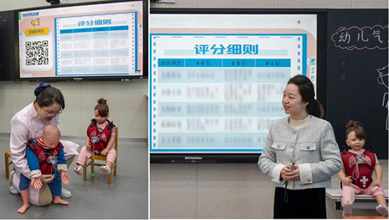 “不好!寶寶被糖果卡住了!”在諸暨職教中心的智慧教室里,一場(chǎng)驚心動(dòng)魄的急救演練正在進(jìn)行。幼兒保育專業(yè)張艷老師與護(hù)理專業(yè)石佳茹老師聯(lián)袂開(kāi)展《氣道異物阻塞應(yīng)急處置》公開(kāi)課。課堂創(chuàng)新采用“VR+實(shí)體”雙軌模式,學(xué)生先在虛擬平臺(tái)演練海姆立克手法,再通過(guò)特制馬甲進(jìn)行實(shí)體操作。雙師協(xié)同有效解決成人手法兒童化難題。課程還設(shè)置“家長(zhǎng)panic”情境劇,讓學(xué)生在搶救同時(shí)練習(xí)安撫技巧,全面提升職業(yè)素養(yǎng)。“這堂課讓我們既掌握了急救技能,更讀懂了保育員的使命。”參與學(xué)生如是說(shuō)。這場(chǎng)跨界教學(xué)實(shí)踐,為培養(yǎng)“技術(shù)+情懷”兼?zhèn)涞男聲r(shí)代保育人才提供了鮮活范本。