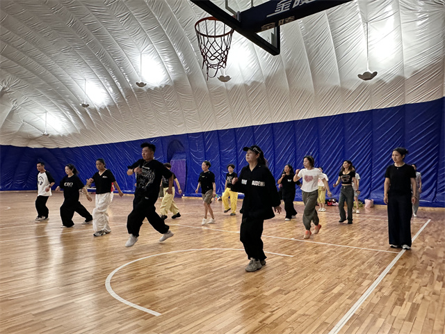 在教學(xué)過程中,考慮到老年學(xué)員們的身體狀況和舞蹈基礎(chǔ),老師將復(fù)雜的舞步拆解成一個(gè)個(gè)簡單易學(xué)的動(dòng)作,耐心細(xì)致地示范講解。從基本的滑步、側(cè)步開始,到逐步加入轉(zhuǎn)身、跳躍等動(dòng)作,學(xué)員們?nèi)褙炞⒌馗鷮W(xué),不時(shí)相互交流、模仿,現(xiàn)場氛圍熱烈而融洽。雖然有些學(xué)員起初動(dòng)作稍顯笨拙,但在老師的鼓勵(lì)和同伴的帶動(dòng)下,大家都積極嘗試,努力跟上節(jié)奏。