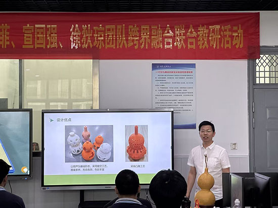 首先是宣國強、周媛珍、汪曌君三位老師合作推出的《葫蘆燈的制作》文專融合公開課,通過實踐小組制作葫蘆燈過程的分享,一下子激發了課堂氛圍,隨后三位老師分別從機械設計、電路設計、美學設計的不別角度作出點評,并提出通過AI技術來彌補不足,從而讓傳統非遺項目與現代技術結合起來,讓全場感到震撼。接著推出的是由姚坤、俞瓊超兩位老師合作的電商+機械的專專融合創新課堂《數智工坊創新實踐:校園3D文創短視頻大賽》。指導老師設置任務情境,引導學生運用所學知識,進行短視頻制作,并展示成果,其中應用AI技術“剪同款”的模板制作是最大的看點。整個過程讓學生做課堂的主人,引導學生發揮自己的主觀能動性、通過動手、動眼、動嘴、動腦,主動獲取知識。而在隨后對兩堂公開課進行的聽課評課環節,與會名師及各位工作室成員的積極發言,共同探討創新課堂的方向,并提出了AI賦能課堂改革新模式。