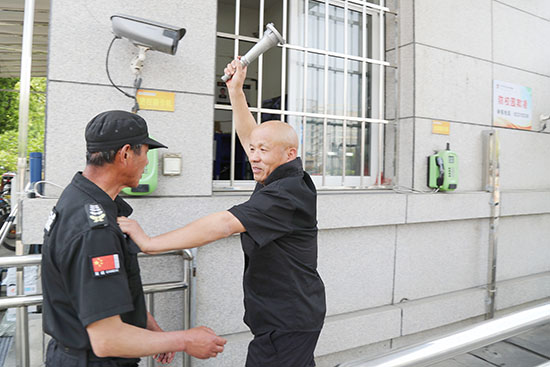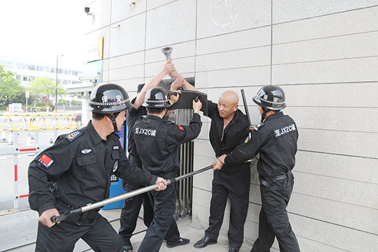演練模擬極端場景:一名“暴徒”暴力沖破門禁企圖闖入校園。保安團(tuán)隊迅速啟動應(yīng)急預(yù)案,一方面以盾棍叉三角合圍戰(zhàn)術(shù)牽制嫌疑人,另一方面立即觸發(fā)一鍵報警系統(tǒng)并上報應(yīng)急領(lǐng)導(dǎo)小組。參演人員沉著應(yīng)對,通過戰(zhàn)術(shù)配合成功制服“暴徒”,全程展現(xiàn)“一分鐘反應(yīng)、三分鐘處置”的快速響應(yīng)機制。