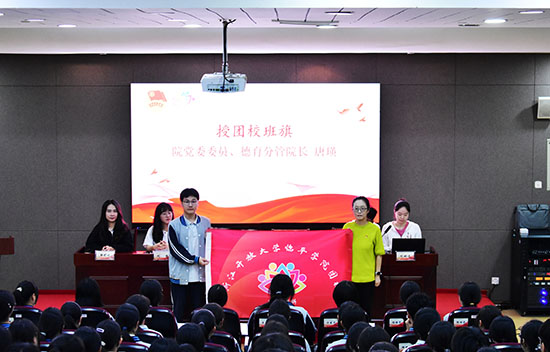 院黨委委員、德育分管院長唐瑛同志向本期團(tuán)校學(xué)員代表——2412藝術(shù)設(shè)計(jì)班的溫志鵬同學(xué)授予了本期團(tuán)校班旗?;照屡c旗幟的傳遞,寓意著組織信任的交付和奮進(jìn)力量的凝聚,激勵(lì)學(xué)員們在班旗引領(lǐng)下團(tuán)結(jié)協(xié)作、銳意進(jìn)取。