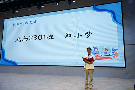 寵物養護2301鄭小夢同學作為學生代表發言。她回顧了在校園里的成長點滴,從初入校園的懵懂少年到如今即將成人的青年,一路走來,感恩老師的辛勤教導和家長的默默付出,未來也將不負期望,砥礪前行。