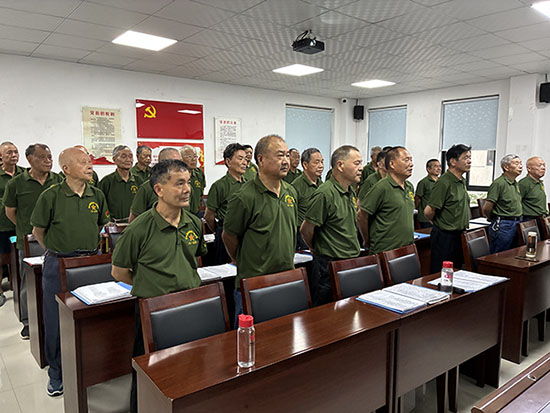 課堂伊始,便展現出令人肅然起敬的軍人風貌。老兵們身著象征生命與忠誠的綠色軍裝T恤,自發按照部隊要求,整齊地站立在座椅后方,雙手背于身后,右手緊握成拳,左手堅定地握住右手腕——一個象征著力量、團結與紀律的獨特軍姿。這無聲的隊列本身,就是一首最嘹亮的軍歌,瞬間將課堂氛圍拉回那熱血沸騰的軍營歲月。