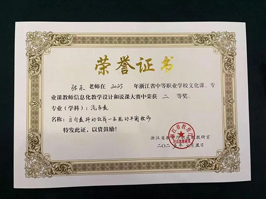 在近日圓滿落幕的浙江省中等職業學校教師信息化教學設計和說課比賽中,代表嵊州市職業教育中心出征的汽修專業骨干教師張東,在紹興市中職汽修類專業教師信息化教學設計與說課比賽突出重圍,以紹興市個人第一名的好成績參加省賽,他憑借扎實深厚的專業功底、匠心獨具的教學設計以及流暢自信的現場展示,在全省眾多頂尖選手中脫穎而出,一舉奪得該賽項二等獎的優異成績。更為振奮人心的是,張東老師憑借比賽中的優異表現,成功鎖定了一張象征更高榮譽的國賽入場券,即將代表浙江省征戰全國大賽舞臺!