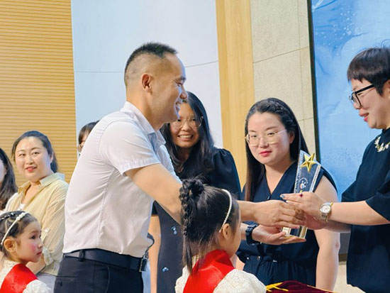 第二篇章:成長之歌·感恩向行。中心幼兒園大四班舞蹈《幻視長安》;中心幼兒園、第二幼兒園、洄村中心村幼兒園的大班幼兒表演武術(shù)操《中華少年》;親子節(jié)目《愛的華爾茲》; 第二幼兒園大二班幼兒舞蹈《童夢留聲機(jī)》;中心幼兒園大班幼兒、家長、教師代表朗誦《時(shí)光信箱》。期間頒發(fā)三個(gè)年段的“美麗家長”證書。