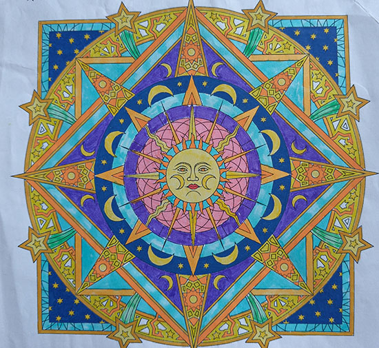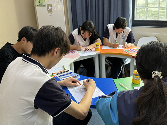 隨后,培訓進入實踐環節。柳老師為每位學生發放了曼陀羅繪畫模板和彩筆,并引導學生們靜下心來,拋開雜念,將自己當下的情緒和感受通過色彩和線條表達在紙上。有的學生選擇用明亮的色彩勾勒圖案,試圖驅散內心的陰霾;有的學生則用深沉的色調填充畫面,將積壓已久的焦慮盡情釋放。整個教室安靜而專注,只聽見畫筆在紙上滑動的沙沙聲。?