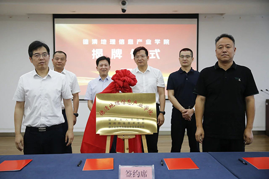 6月19日上午,德清地理信息產業學院揭牌儀式在湖州莫干山高新區管委會舉行。湖州莫干山高新區管委會黨工委副書記、管委會副主任姜慶華,湖州職業技術學院黨委委員、副校長左希慶,德清縣教育局黨委書記、局長陳建峰等政校代表,以及圖聯科技等6家企業代表齊聚一堂,標志著德清在推動職業教育深度服務地方產業集群發展上邁出關鍵一步。