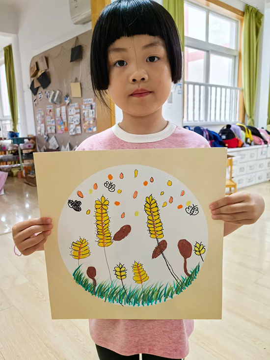 繪畫創作:金黃的麥穗是芒種時節的象征,幼兒們拿起手中的畫筆,用心描繪自己心中的麥田,鮮艷的色彩,靈動的筆觸,飛舞的蝴蝶,一幅幅畫讓人感受到了豐收的喜悅。