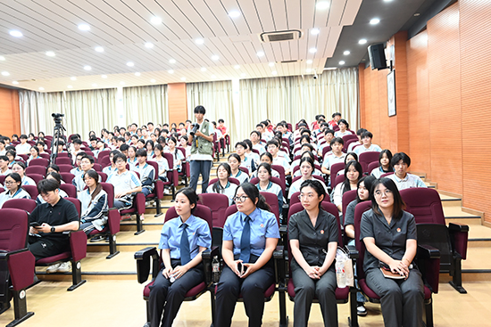 活動當日,現場氛圍莊重而熱烈。浙江開放大學臨平學院分管副院長唐瑛擔任主持,區關工委關愛團團長孫建兒、區委政法委委員兼政治處主任黃劍頻、區公安分局黨委委員兼政治處主任及機關黨委書記錢衛龍、區教育局四級調研員周順芳、區檢察院第三檢察部主任兼一級檢察官張爽、浙江開放大學臨平學院院長沈琪等領導出席,高二年級學生通過線上線下相結合的方式積極參與,充分彰顯了社會各界對青少年法治教育的高度關注。