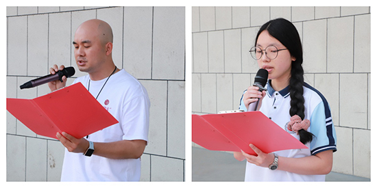 國旗獵獵迎風(fēng)展,晨光熠熠潤心田。教師代表與學(xué)生代表分別以《家國情懷永流長 端午粽香傳千里》《黨引青春 奮進(jìn)新篇》等主題發(fā)表精彩講話。字字如鼓點(diǎn)叩擊少年心扉,聲聲似號角喚醒奮斗豪情,引領(lǐng)莘莘學(xué)子以赤子之心熔鑄時(shí)代擔(dān)當(dāng),在青春賽道上奮力奔跑出屬于自己的榮光。