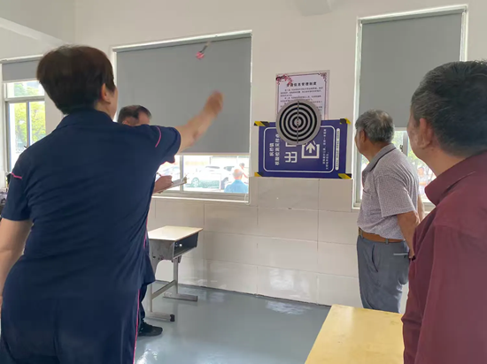 來自8個小組的退休教師歡聚一堂,在運動場上盡情揮灑活力,享受運動帶來的樂趣。考慮退休教師的興趣和愛好,設置了富有趣味性又適合老年人參與的項目:男子兜球,女子飛鏢。兜球場地設置在田徑場上,飛鏢則在一樓教室內。兩個場地同時進行,參賽教師個個精神矍鑠,斗志昂揚,用矯健身姿、敏捷的動作詮釋“老有所樂、老有所為”的處世態度。比賽場地上你追我趕,奮勇爭先。成功了,高興不已,連同場外人員喝彩不斷;失利了,不氣餒,調整身手以待下一次取得成功。場外,長時不見的老同事們扎堆三五成群交流近況,分享生活中的趣事和養生的經驗,交談中不忘深情回憶曾經工作時的分分秒秒,兩個場地始終充滿著溫馨和諧的氛圍。