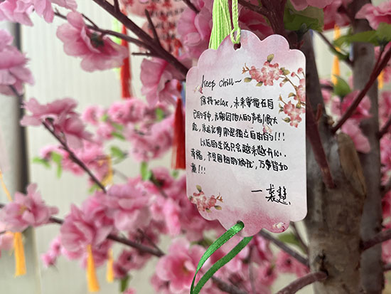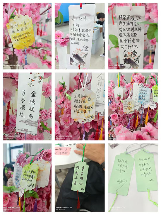 最后,同學(xué)們在精美的書簽上鄭重寫下自己的高考目標和人生愿望。有的同學(xué)畫上了理想大學(xué)的校徽,有的寫下了激勵自己的座右銘,還有的記錄了父母溫暖的寄語。當一張張承載著夢想的書簽被掛上心愿樹時,仿佛為每個夢想都裝上了隱形翅膀。