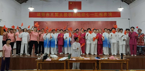 組織參加《王冕太極拳基地迎‘七一’文藝匯演》,節(jié)目以熱鬧的“威風鑼鼓迎賓曲”開場,奠定了喜慶熱烈的基調(diào),全場緊扣太極拳,先后表演了32式、24式、16式、8式、42式等各式太極拳,充分展示了學員們學習后的扎實功底,行云流水的一招一式體現(xiàn)出學員們精湛的技藝,每一組的上場都贏得了觀眾們熱烈的掌聲。其中穿插演出了歌曲獨唱《我的中國心》、京劇智取威虎山選段《共產(chǎn)黨員》、越劇《金玉良緣》等21個節(jié)目,200多名觀眾到場觀看,紛紛為精彩的節(jié)目點贊叫好,郭文英組織的演出能得到大家的認可,覺得很開心。演出結束后,參加匯演的人員與觀眾又為村關愛基金(愛心食堂)進行捐款,共得17178元。