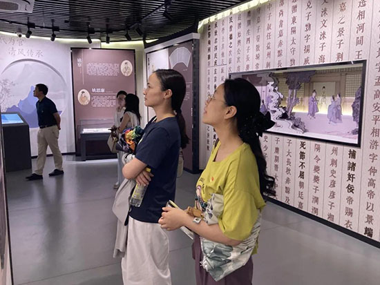 在“苕霅清風”展廳,黨員們跟隨講解員的講述,穿越歷史長河,了解湖州歷代地方官的清廉故事。那些與湖州地名緊密相連的清廉事跡、承載清廉思想的文物和詩文,讓大家深刻感受到湖城深厚的清廉文化底蘊,為古代賢能的高尚品格所感召。